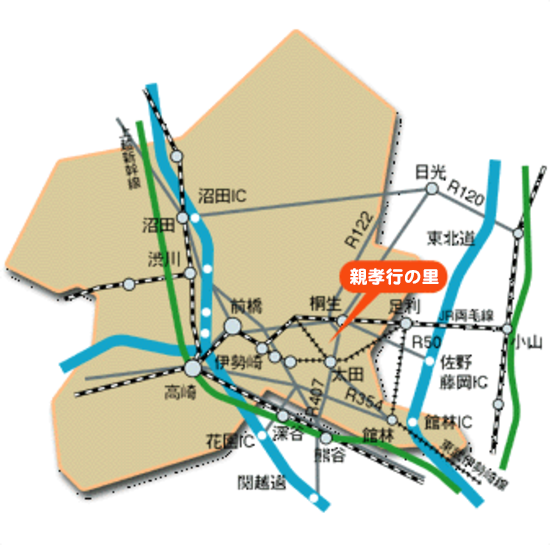 関越自動車道から北関東横断道経由、太田藪塚インターより10分